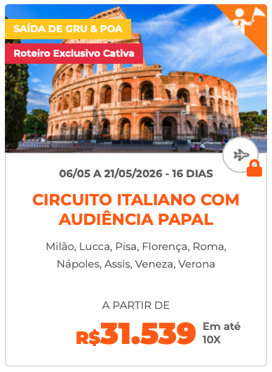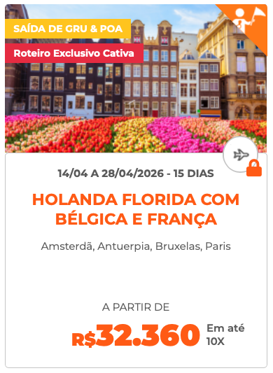 | Grande Tour da França Setembro de 2026 | Circuito Italiano com audiência Papal Maio de 2026 | Holanda Florida Abril de 2026 |